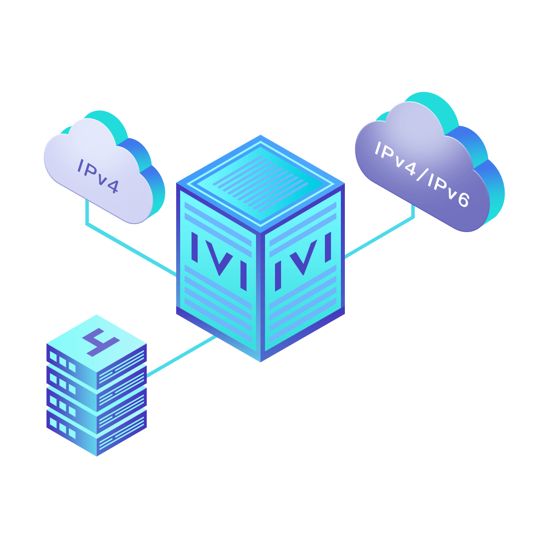 對(duì)正在進(jìn)行IPv6整體升級(jí)規(guī)劃的運(yùn)營(yíng)商,應(yīng)用IPv6升級(jí)方案2.5,通過(guò)IVI無(wú)狀態(tài)翻譯技術(shù)和純IPv6接入網(wǎng)絡(luò),為雙棧客戶(hù)端和雙棧服務(wù)器提供連通服務(wù)。